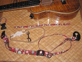 同じ方が、「犬のお散歩用のリードと首輪」でウクレレストラップ作っています。