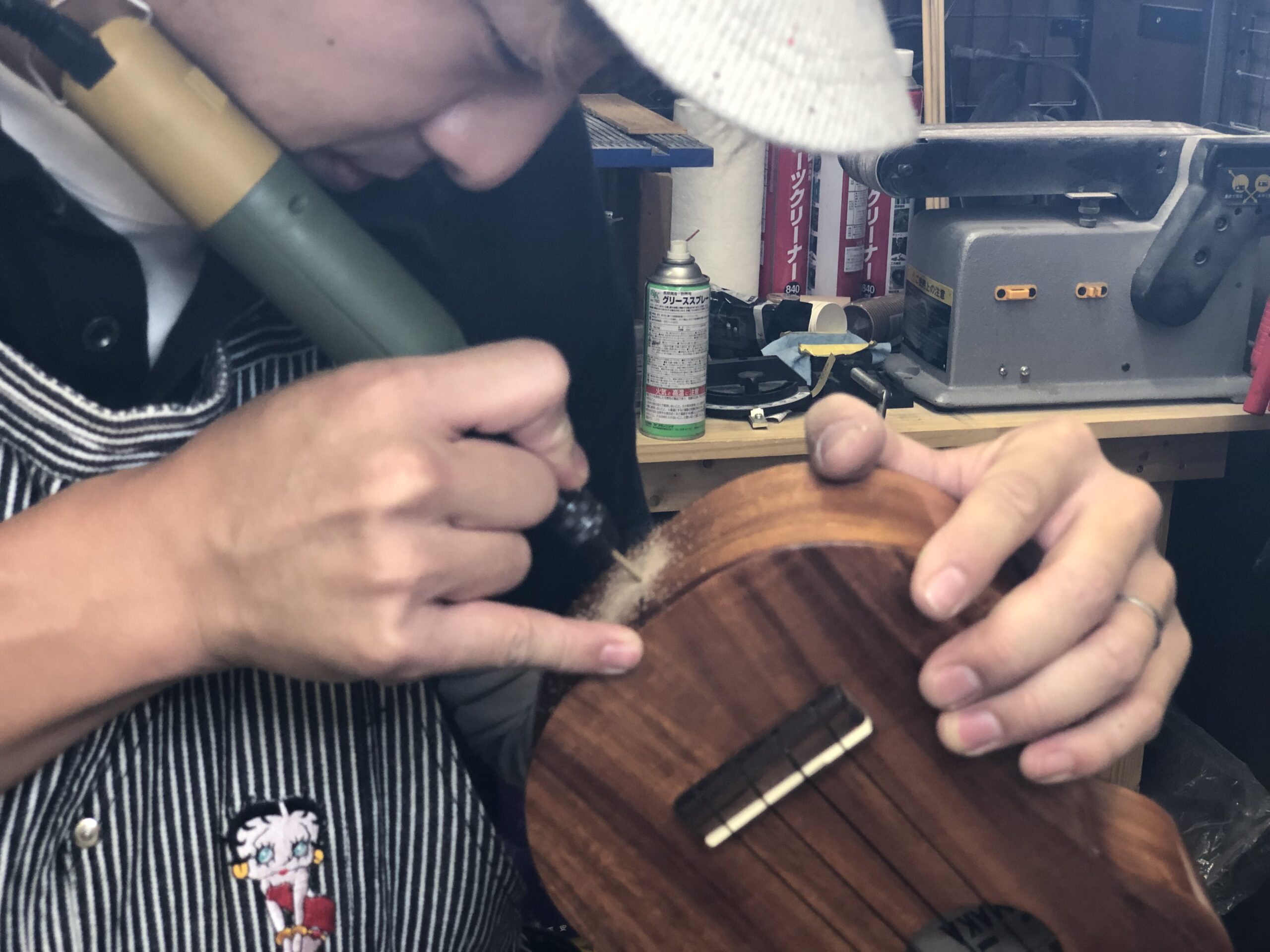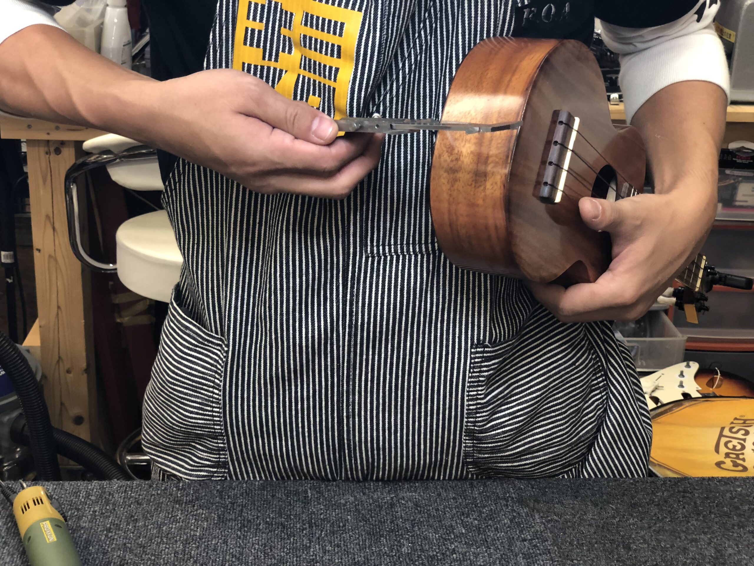 4年間頑固に「私は、ウクレレに穴を開けません!」と言ってきた私が、「ウクレレをもっと安定させて、上達したい!」という心の変化が生じ、決行した加工です。